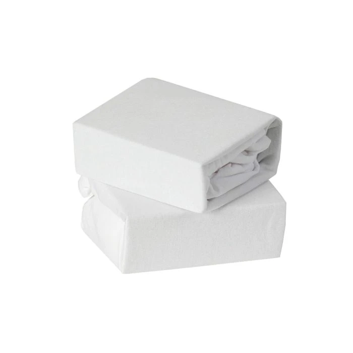 Baby Elegance 2 Pack Jersey sheets are made from 100% cotton jersey and are machine washable. They are available in moses/pram, crib, travel cot, cot and cot bed sizes and they are available in white and cream.