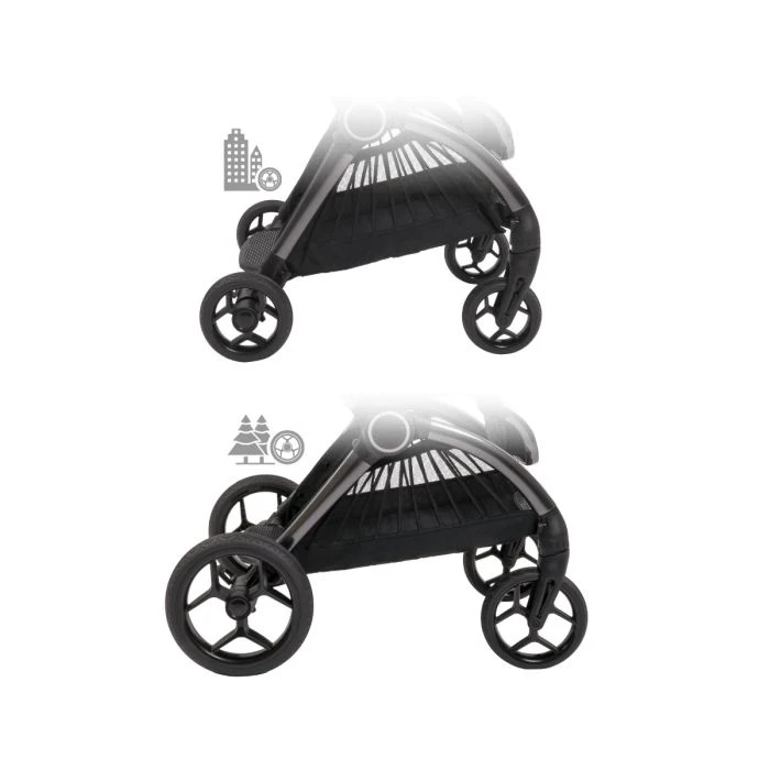 - Converts to full travel system with included car seat adaptors