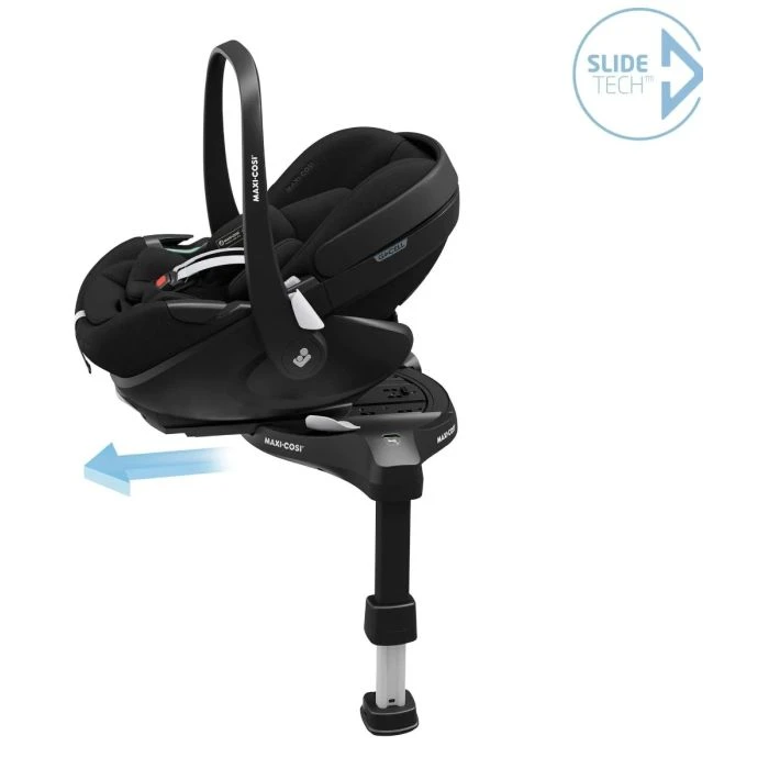 - Revolutionary sliding car seat technology makes every day easier for parents. No backaches, head bangs or struggles.