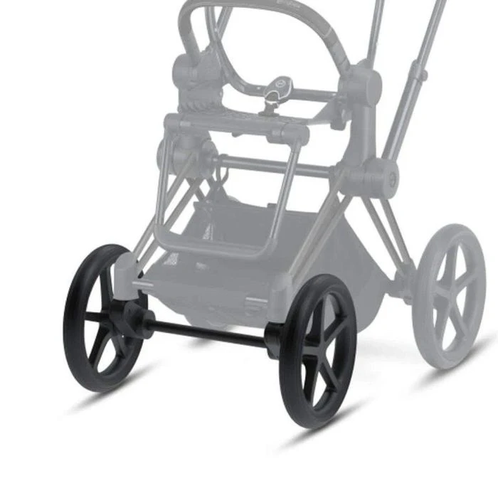 The Cybex Priam Front Wheel Set Rough Terrain is made to ride smoother on bumpy roads without waking up your baby from all the shakes of the terrain. The stroller gets a lighter push so you stroll with more ease through the woods or on a walk at the beach. The old wheels are easily detached, and the new wheels are easily mounted on with a click system. A piece of cake!Â