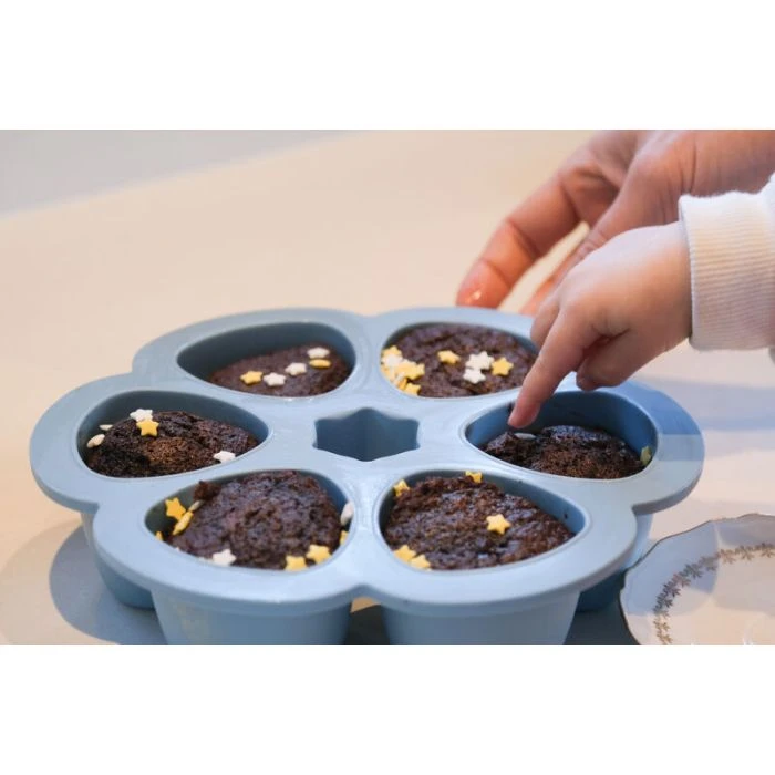 Béaba silicone baby food storage pots. Multiportion tray for storing up to 6 portions.