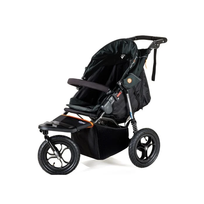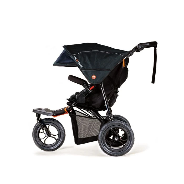 The award-winning Nipper V5 Pushchair from Out ‘n’ About guarantees effortless manoeuvrability, providing smooth rides in any setting,! The 2023 v5 model has technical water resistant fabrics, extendable sunvisor and UV visor, improved 5 point safety harness, magnetic peakaboo window and a new one-hand quick fold mechanism. The v5 also comes with a rain cover and basket included.You can push the Nipper across terrains and to places you wouldn’t think you can take a buggy. This is because of its light frame, suspension, air filled tyres and lockable three wheels. Nipper V5 folds in a matter of seconds! Simply unclip the locking catches on each side of the frame, and pull the strap in the base of the seat unit. If you need to go even smaller still you can remove the quick-release wheels