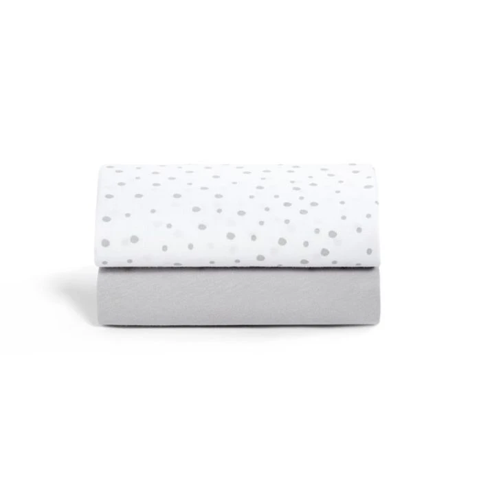 These soft an snuggly sheets will fit the Snuzpod3 and most bedside cribs (50x90cm Max)). In a muted grey shade, these sheets will complete your little bundles bedside crib. Made from super soft jersey cotton they are light and breathable to help control your babies body temperature