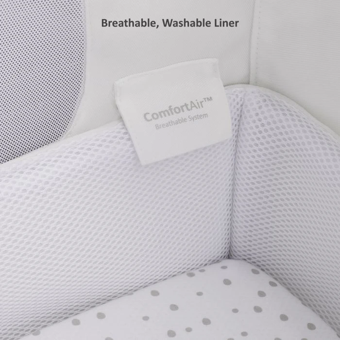 The SnuzPodā“ Bedside Crib is designed to provide a comfortable and convenient sleeping solution for both parents and babies. With its innovative ComfortAir system, featuring air-flow vents and a machine washable mesh liner, the crib ensures optimal breathability, helping to regulate your baby’s temperature throughout the night. This is essential for promoting a good night’s sleep for both baby and parents.