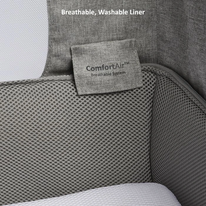 The SnuzPod⁴ Bedside Crib is designed to provide a comfortable and convenient sleeping solution for both parents and babies. With its innovative ComfortAir system, featuring air-flow vents and a machine washable mesh liner, the crib ensures optimal breathability, helping to regulate your baby’s temperature throughout the night. This is essential for promoting a good night’s sleep for both baby and parents.